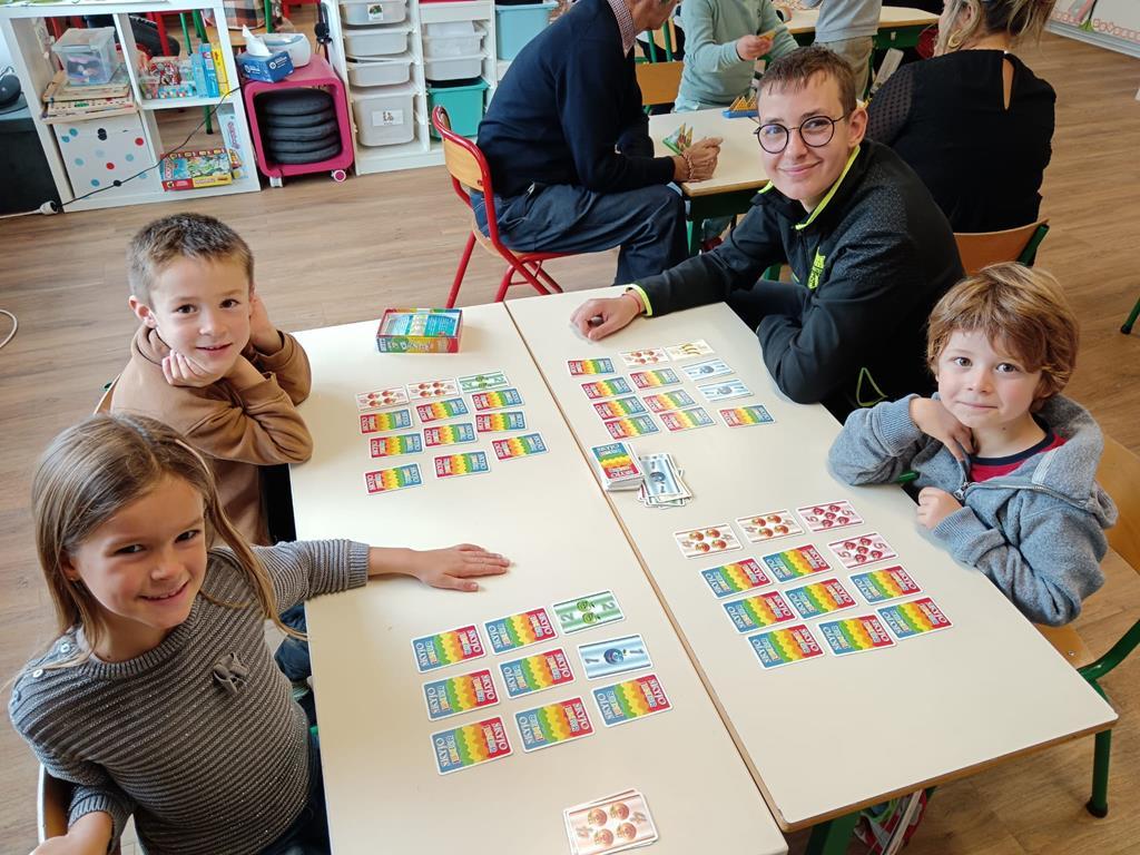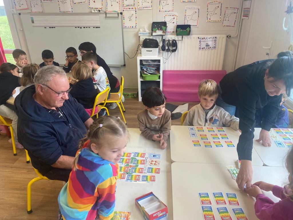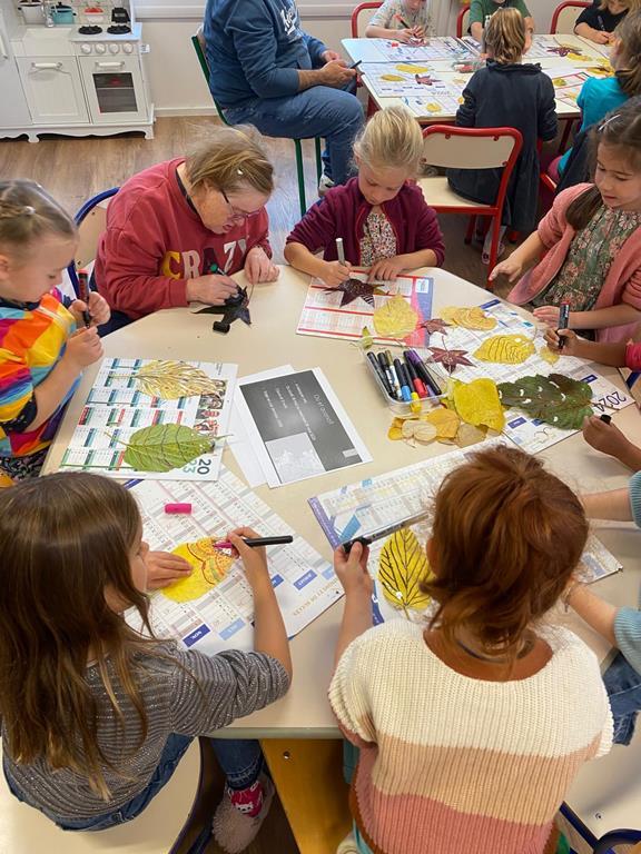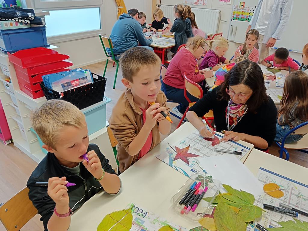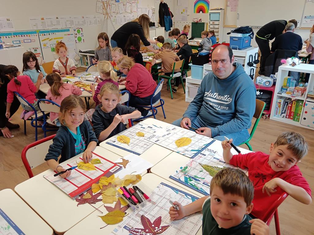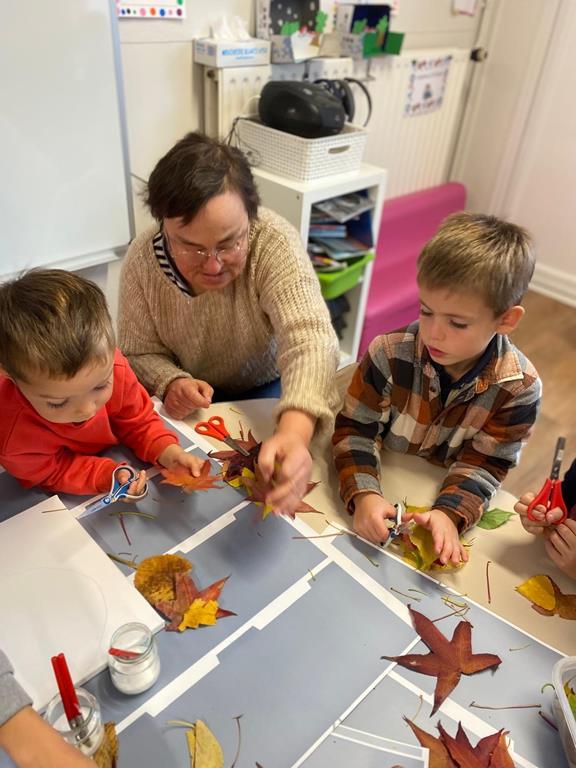 Les classes de GS et CP du site Sainte Anne renouvellent cette année leur partenariat avec le SAESAT d’Ancenis St Géréon ( le foyer de vie pour adultes handicapés). Lors d’une après-midi, 9 résidents et leurs accompagnateurs sont venus dans les classes pour faire des ateliers créatifs autour de feuilles d’automne. Ils ont également joué à des jeux de société et partager la récréation. Des parents sont venus aider, merci à eux. Ce moment de partage est une vraie rencontre de “l’Autre”. Au mois de décembre, les élèves rendront visite aux résidents pour des ateliers autour de Noël.