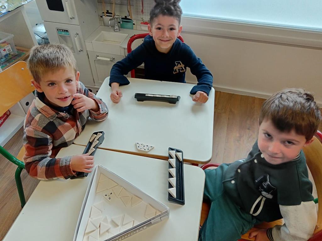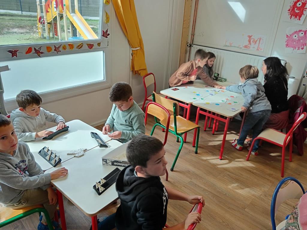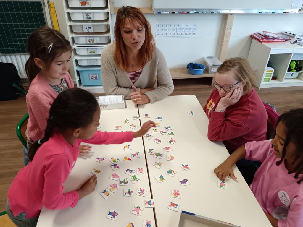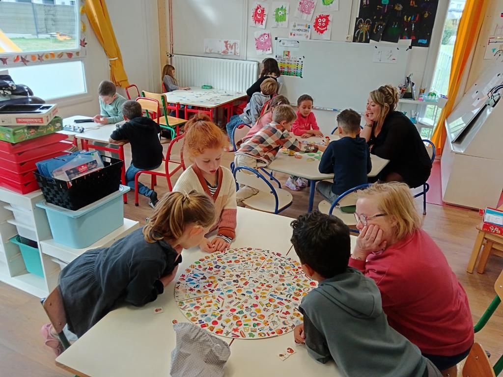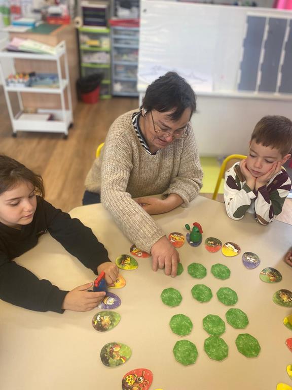 Les classes de GS et CP du site Sainte Anne renouvellent cette année leur partenariat avec le SAESAT d’Ancenis St Géréon ( le foyer de vie pour adultes handicapés). Lors d’une après-midi, 9 résidents et leurs accompagnateurs sont venus dans les classes pour faire des ateliers créatifs autour de feuilles d’automne. Ils ont également joué à des jeux de société et partager la récréation. Des parents sont venus aider, merci à eux. Ce moment de partage est une vraie rencontre de “l’Autre”. Au mois de décembre, les élèves rendront visite aux résidents pour des ateliers autour de Noël.