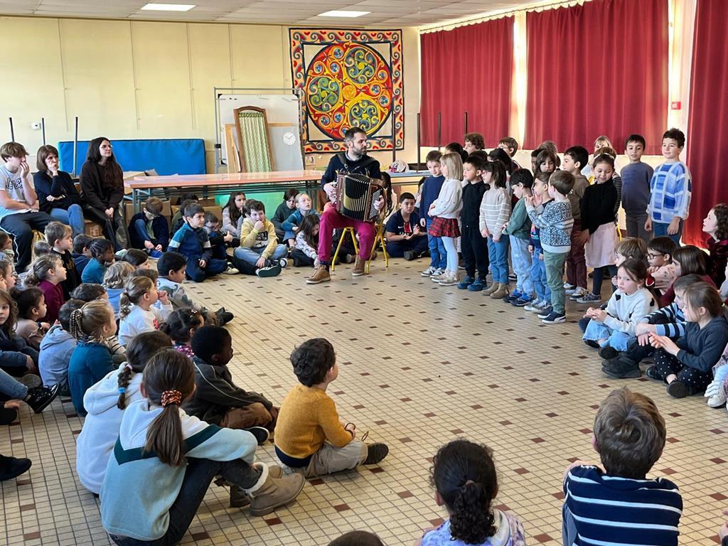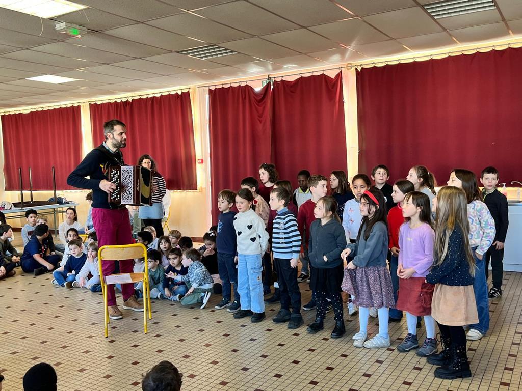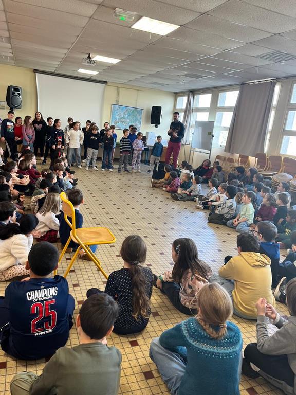 Dans le cadre du parcours “Musique et danse ” proposé par la COMPA, des  classes du site Saint Louis ont bénéficié de séances de chant et rythme avec Jean-Philippe Laur. Pendant plusieurs, les enfants ont chanté, découvert des instruments et des rythmes. Pour finaliser ce projet, les classes se sont retrouvées pour chanter ensemble.