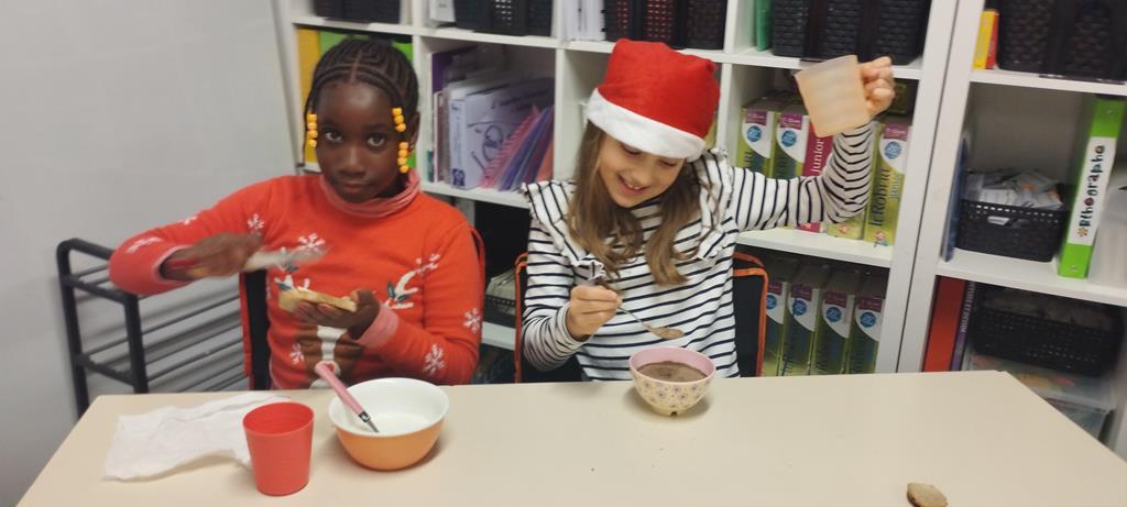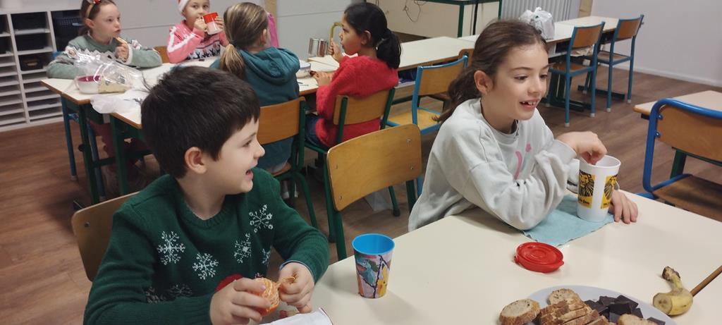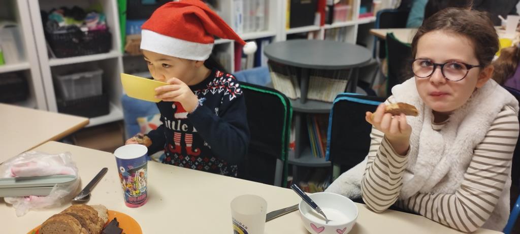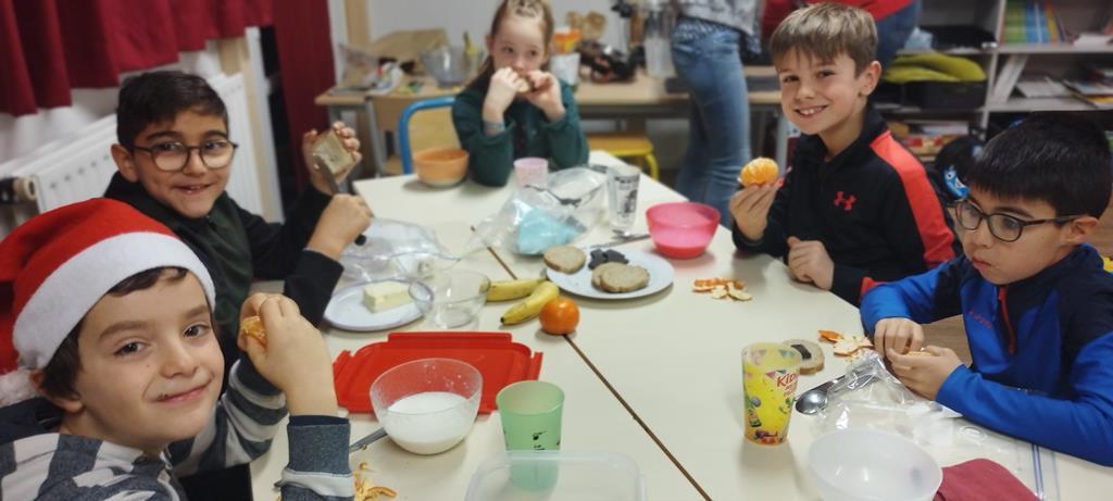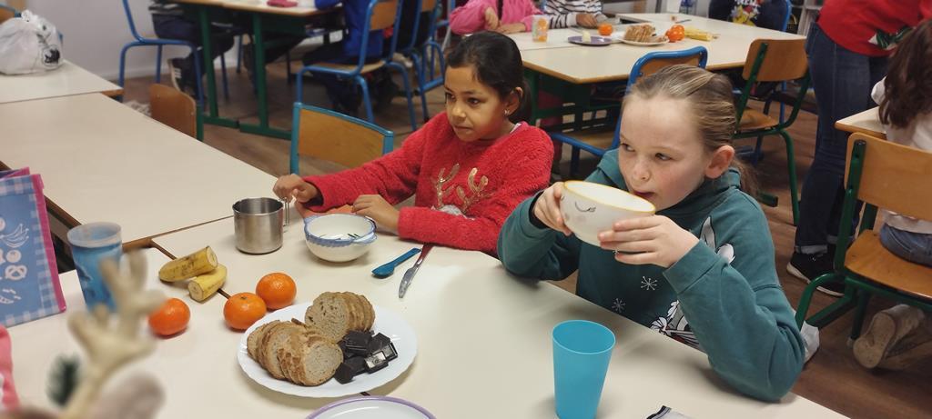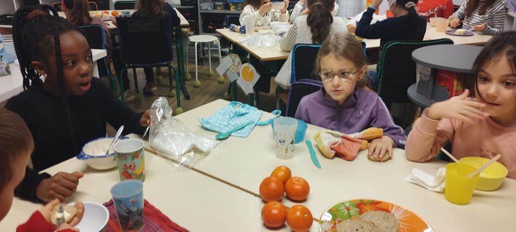 Les élèves de CE1 et CE2 du site Anne ont pris un petit-déjeuner en classe. Ils sont venus plus tôt à l’école pour partager ce moment important de la journée. Durant cette période, en séances de sciences, les élèves ont travaillé sur la nutrition. Ils ont compris l’importance d’équilibrer les repas pour être en bonne santé. Ce petit-déjeuner était donc l’occasion de passer de la théorie à la pratique.