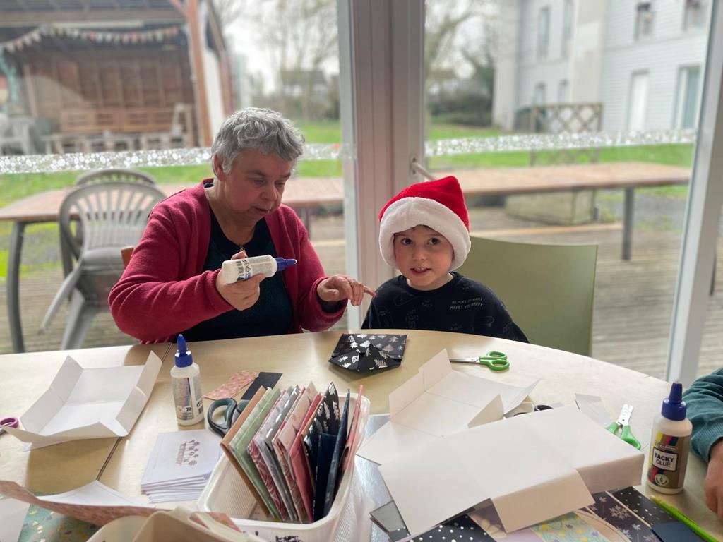 En lien avec le projet d’année “S’ouvrir pour découvrir”, les élèves de GS et CP du site Ste Anne sont en lien avec les résidents du foyer de vie de la SAESAT d’Ancenis-St Géréon. Pour leur deuxième rencontre de l’année, ce sont les élèves qui se sont déplacés. Jeudi matin, 18 décembre, ils ont partagé une lecture de conte de Noël et créé une carte et une enveloppe de Noël. Les enfants créent un beau lien qu’ils vont pouvoir entretenir tout au long de l’année.
