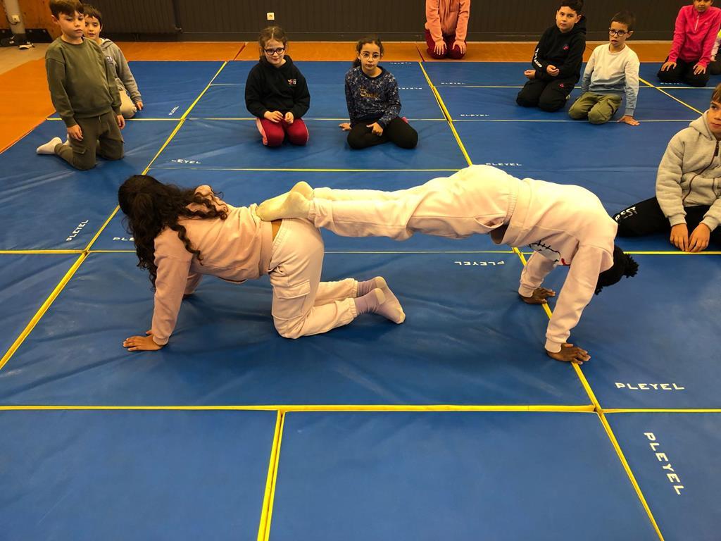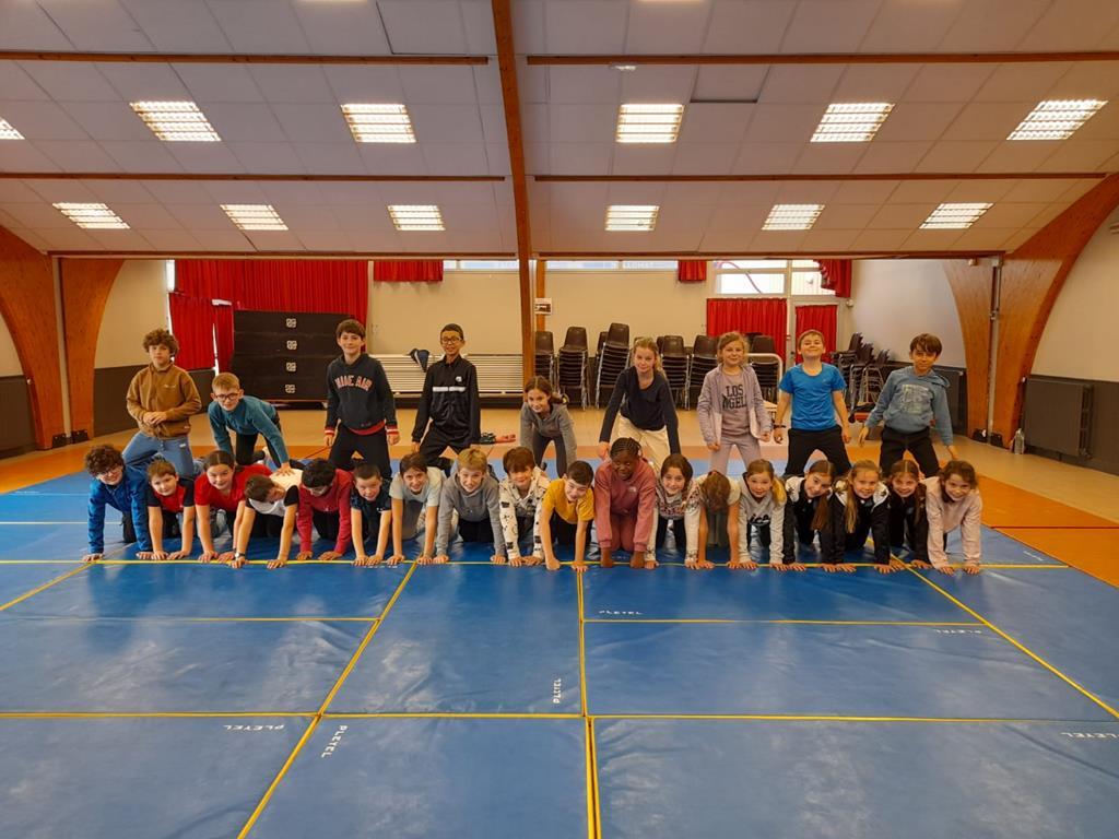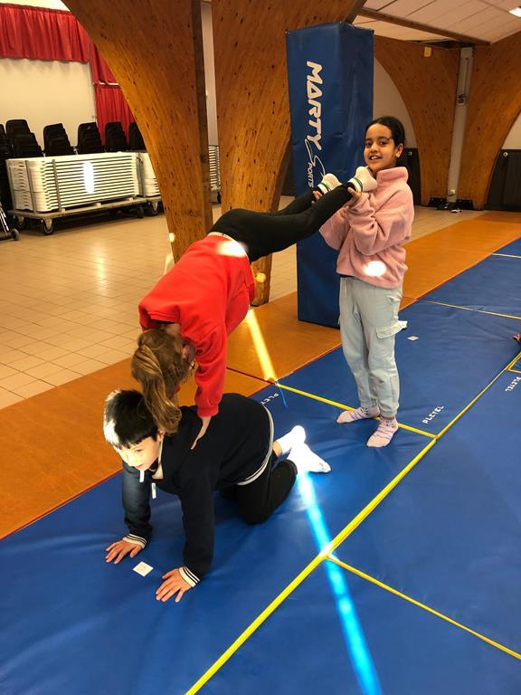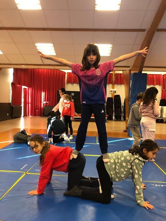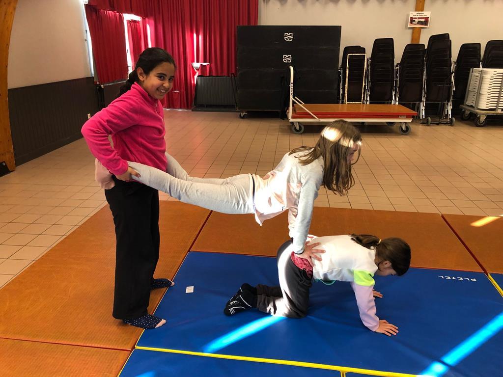 Durant cette période, les séances de sport continuent. Voici quelques photos de jeux d’adresse, d’acrogym ou autre…