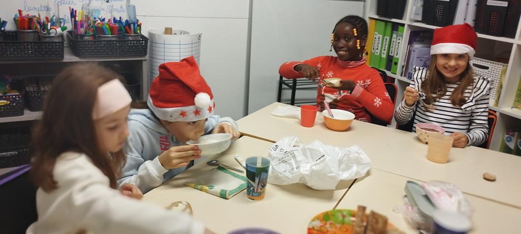 Les élèves de CE1 et CE2 du site Anne ont pris un petit-déjeuner en classe. Ils sont venus plus tôt à l’école pour partager ce moment important de la journée. Durant cette période, en séances de sciences, les élèves ont travaillé sur la nutrition. Ils ont compris l’importance d’équilibrer les repas pour être en bonne santé. Ce petit-déjeuner était donc l’occasion de passer de la théorie à la pratique.