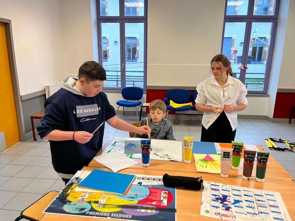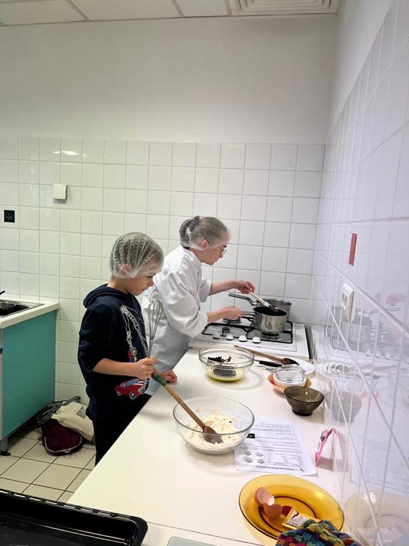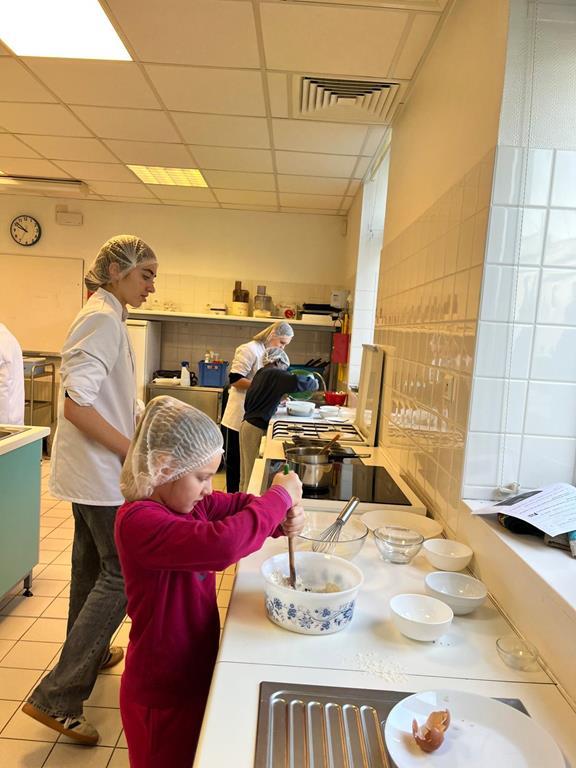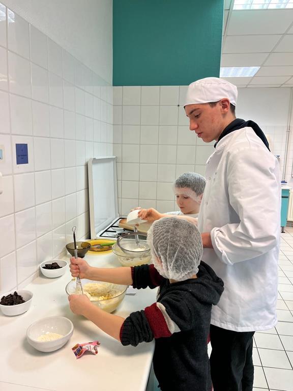 En classe au lycée : dans le cadre d’un partenariat avec le lycée Jean-Baptiste Eriau, les élèves de CE1-CE2 du site St Louis ont été accueillis durant deux matinées pour participer à des ateliers cuisine, bricolage et jeux de société préparés et animés par les jeunes et leurs professeurs. Chacun est reparti avec ses réalisations… Succès garanti pour les artistes et les gourmands !