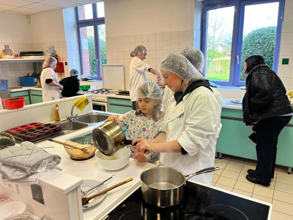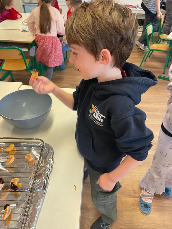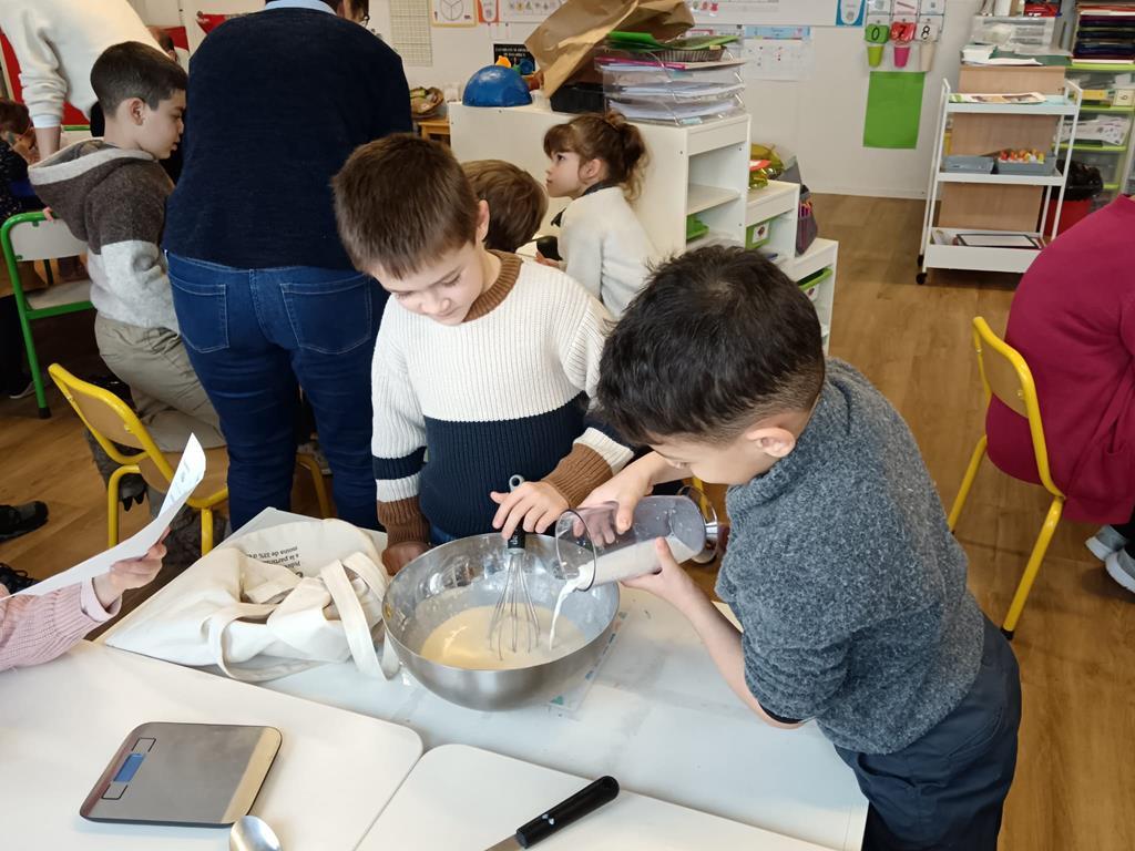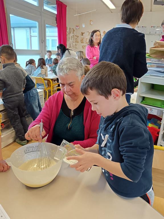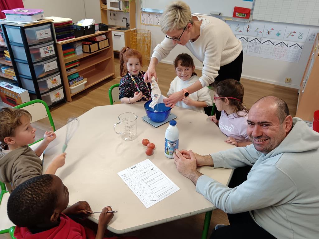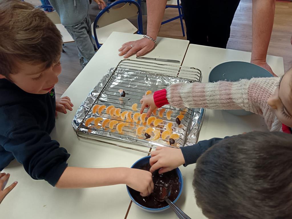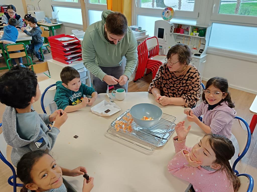 Comme les autres périodes, les élèves de grande-section et CP du site Ste Anne ont rencontré les résidents de l’ESAT d’Ancenis. Cette fois-ci les enfants accueillaient : ils ont fait des crêpes et préparé des clémentines au chocolat. Ils ont également participé à des ateliers d’activités manuelles. Merci aux parents présents sur cette matinée.