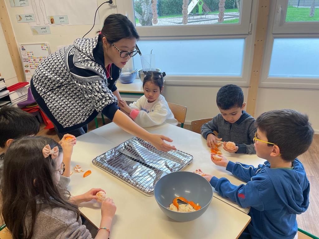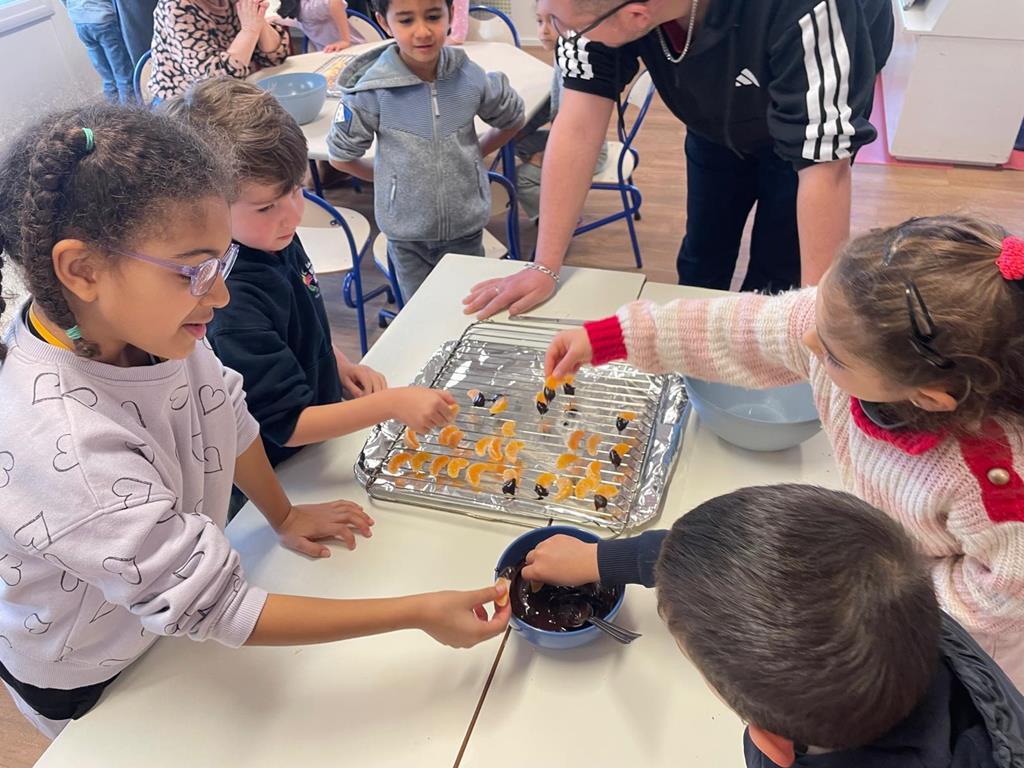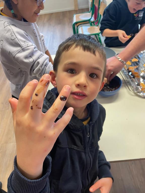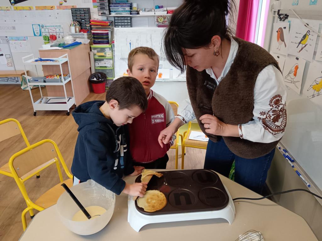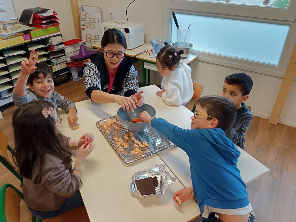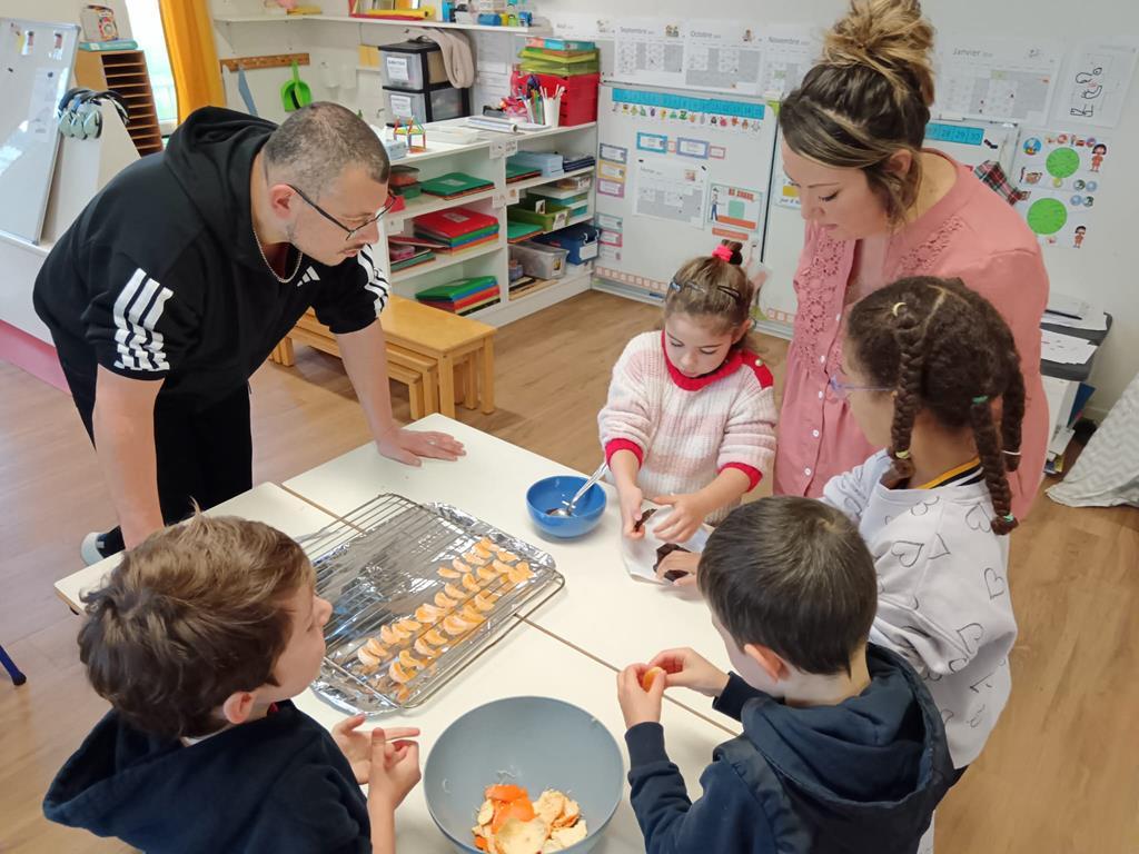 Comme les autres périodes, les élèves de grande-section et CP du site Ste Anne ont rencontré les résidents de l’ESAT d’Ancenis. Cette fois-ci les enfants accueillaient : ils ont fait des crêpes et préparé des clémentines au chocolat. Ils ont également participé à des ateliers d’activités manuelles. Merci aux parents présents sur cette matinée.