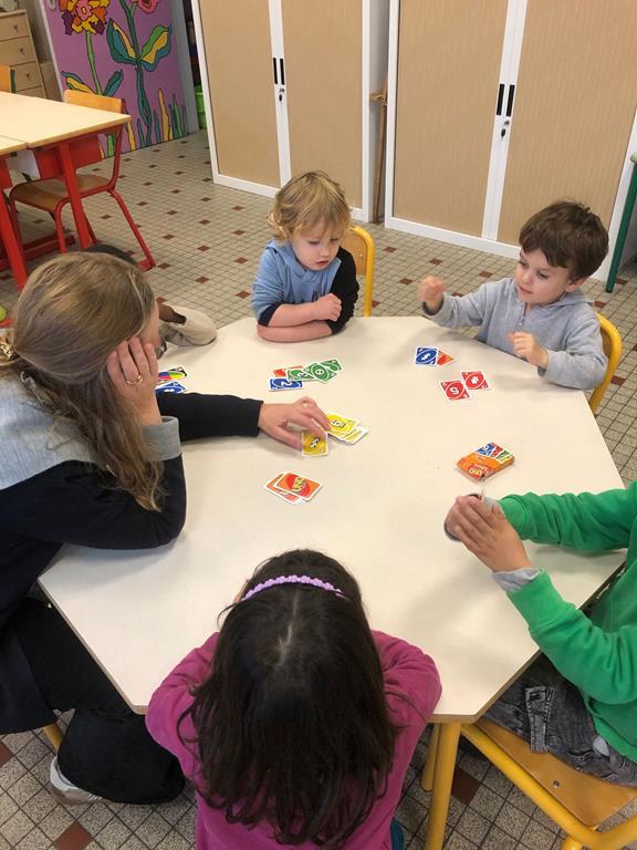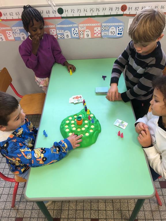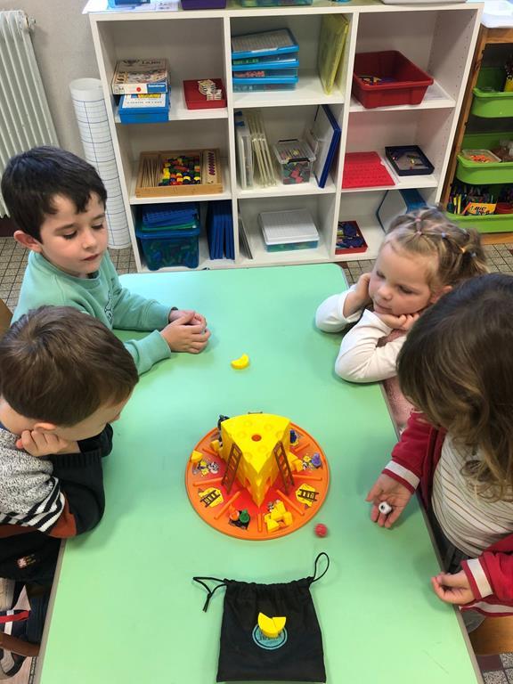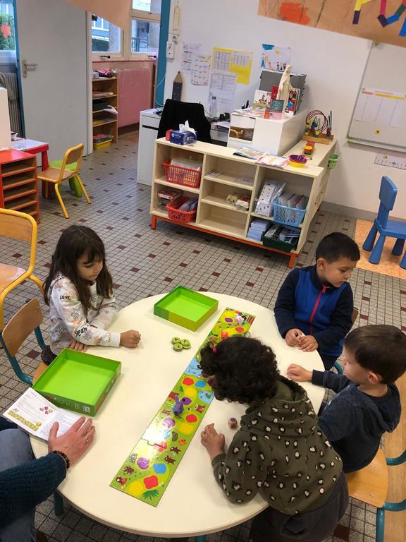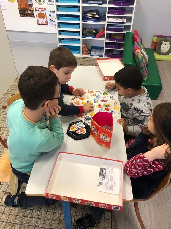 Ateliers jeux de société : les élèves des deux classes de maternelle du site St Louis partagent un moment autour de jeux de société pour apprendre autrement. Ils se retrouvent dans les classes les uns des autres toutes les semaines.