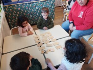 Jeu de Memory : pour beaucoup d’enfants, c’est la première fois qu’ils y jouent. Observer finement les détails des cartes de petits rois et reines. Mémoriser les positions des cartes déjà retournées. Pas évident la première fois.