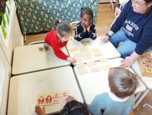 Jeu de Memory : pour beaucoup d’enfants, c’est la première fois qu’ils y jouent. Observer finement les détails des cartes de petits rois et reines. Mémoriser les positions des cartes déjà retournées. Pas évident la première fois.