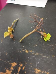 Enfin, régulièrement nous prélevons des branches dans les arbres de l’école pour observer les BOURGEONS qui s’ouvrent et la croissance des feuilles.