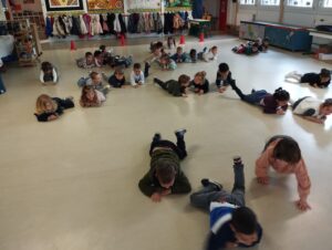 Motricité : un temps où il fallait se déplacer de façon inhabituelle : ramper, puis ramper sur le dos, se déplacer à genoux … et bien d’autres modes de déplacement encore.