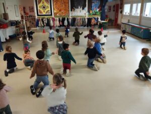 Motricité : un temps où il fallait se déplacer de façon inhabituelle : ramper, puis ramper sur le dos, se déplacer à genoux … et bien d’autres modes de déplacement encore.